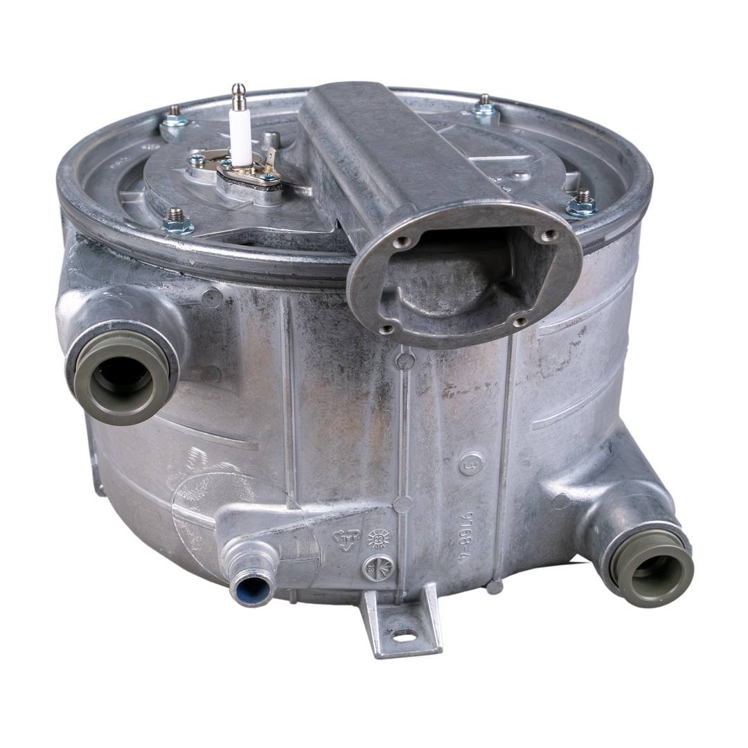 Передает тепловую энергию сжигаемой в камере сгорания газовоздушной смеси теплоносителю посредством теплопроводности. Альтернативное название - монотермический теплообменник.